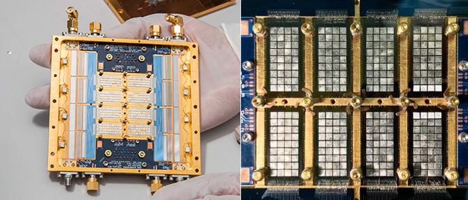 According to SOFIA’s principal investigator Mark Croce, the innovations behind SLEDGEHAMMER and SOFIA stem from an improved multiplexing scheme: “One major advance that SLEDGEHAMMER introduced was time division multiplexing. This is like turning a selector switch to, say, I want channel 2 now and then it switches over to channel 2, channel 3, etc. and cycles through.” This implementation required all custom electronics, which were expensive and less advanced compared with field programmable gate arrays (FPGAs)—integrated circuits sold off-the-shelf. Croce continues: “The current version of SOFIA is essentially like FM radio. So, every channel, every sensor in the detector array has its own unique carrier frequency that it modulates. The firmware in our FPGAs is recording all of those signals simultaneously and separating them by the known resonator frequency.”
