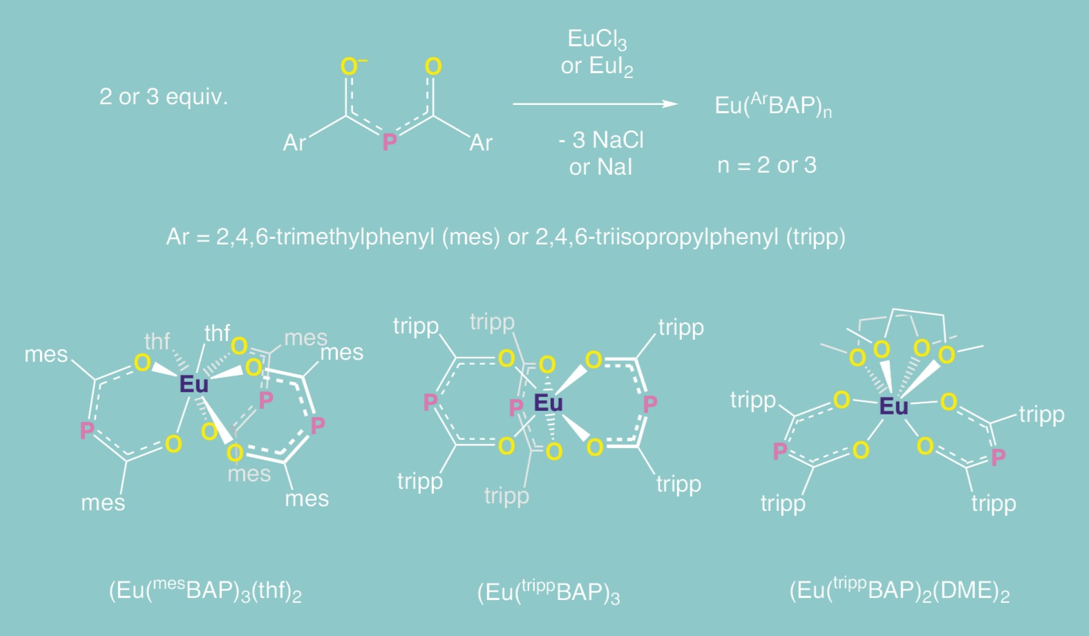 Initial europium studies showed the feasibility of using the BAP motif to stabilize molecular lanthanide complexes over multiple oxidation states. Encouraged by these results, further investigations into the reactivity of the trippBAP moiety were performed with erbium, a lanthanide metal with a spin-active nucleus that provides an additional spectroscopic handle for characterizing and understanding the electronic structures of these compounds. After successfully synthesizing an erbium(III) complex with three ligands, Er(trippBAP)3, reduction by one or two electrons allowed for the formation of new complexes in the formal oxidation states of erbium(II) and (I) (Fig. 3). Magnetic studies to confirm these oxidation states are ongoing and it is likely that these formally designated oxidation states do not capture their true, complex electronic structures. Nevertheless, the electronic flexibility imparted by the ligand through the phosphorus atom in the backbone may provide electronic stabilization of formal oxidation states that are unprecedented for erbium.