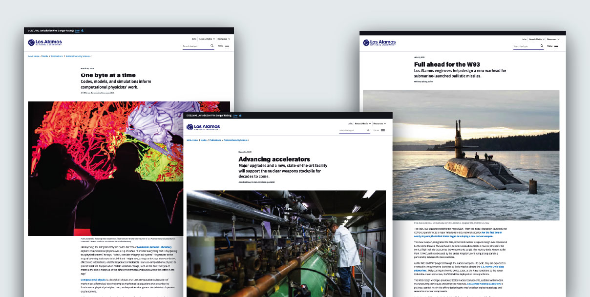 National Security Science magazine is the award-winning, authoritative resource on national security work at Los Alamos National Laboratory. National Security Science provides compelling, in-depth coverage of the Laboratory’s mission-critical work, with a focus on science-based stockpile stewardship and the Los Alamos-designed and -maintained weapons systems that compose the United States’ nuclear deterrent.